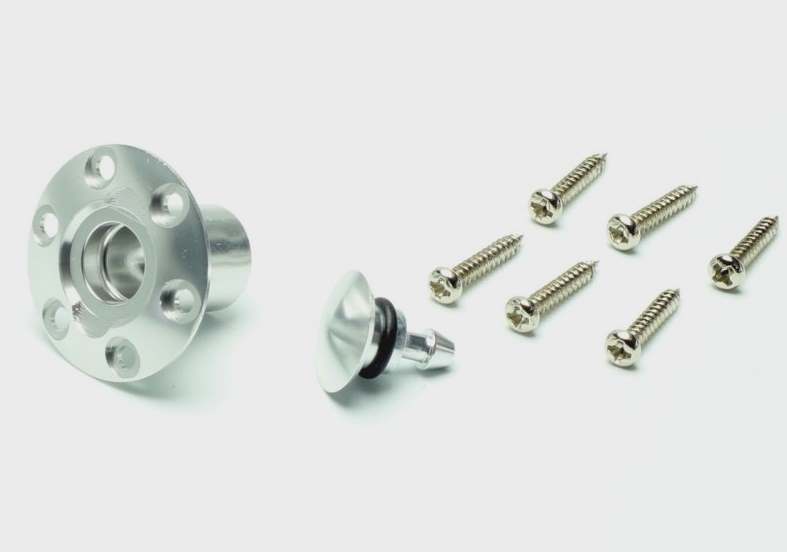 Betankungsarmatur mit Verschlussstopfen, silber inkl. Befestigungsschrauben.