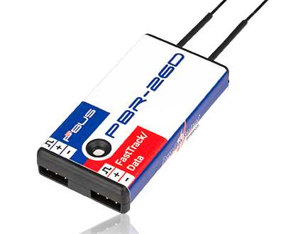 Ein Satellitenempfänger mit zwei redundanten Empfangsteilen. Der Empfänger besitzt eine P²BUS Schnittstelle für Servo- und Telemetrie Daten und einen Zusatzausgang der als SRXL oder S-BUS konfiguriert werden kann. Dieses Empfangsteil ist zur Anbindung an unsere PowerBox Stromversorgungen oder Flybarless-Systeme gedacht. Optional kann der iGyroSAT angeschlossen werden um die eingebaute iGyro Funktion zu nutzen. Die eingebaute Empfangsteile können mit dem PBR-26XSum eine zusätzliche Empfangseinheit erweitert werden.