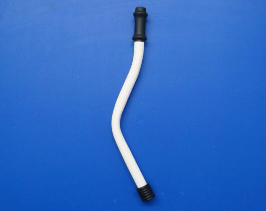 Steuerknüppel aus Kunststoff. Durch eine Bohrung am Fuß lässt sich der Steuerknüppel mit einer kurzen Schraube oder einem kleinen Rundholzstück leicht im Cockpit, in beliebiger Position, befestigen.
